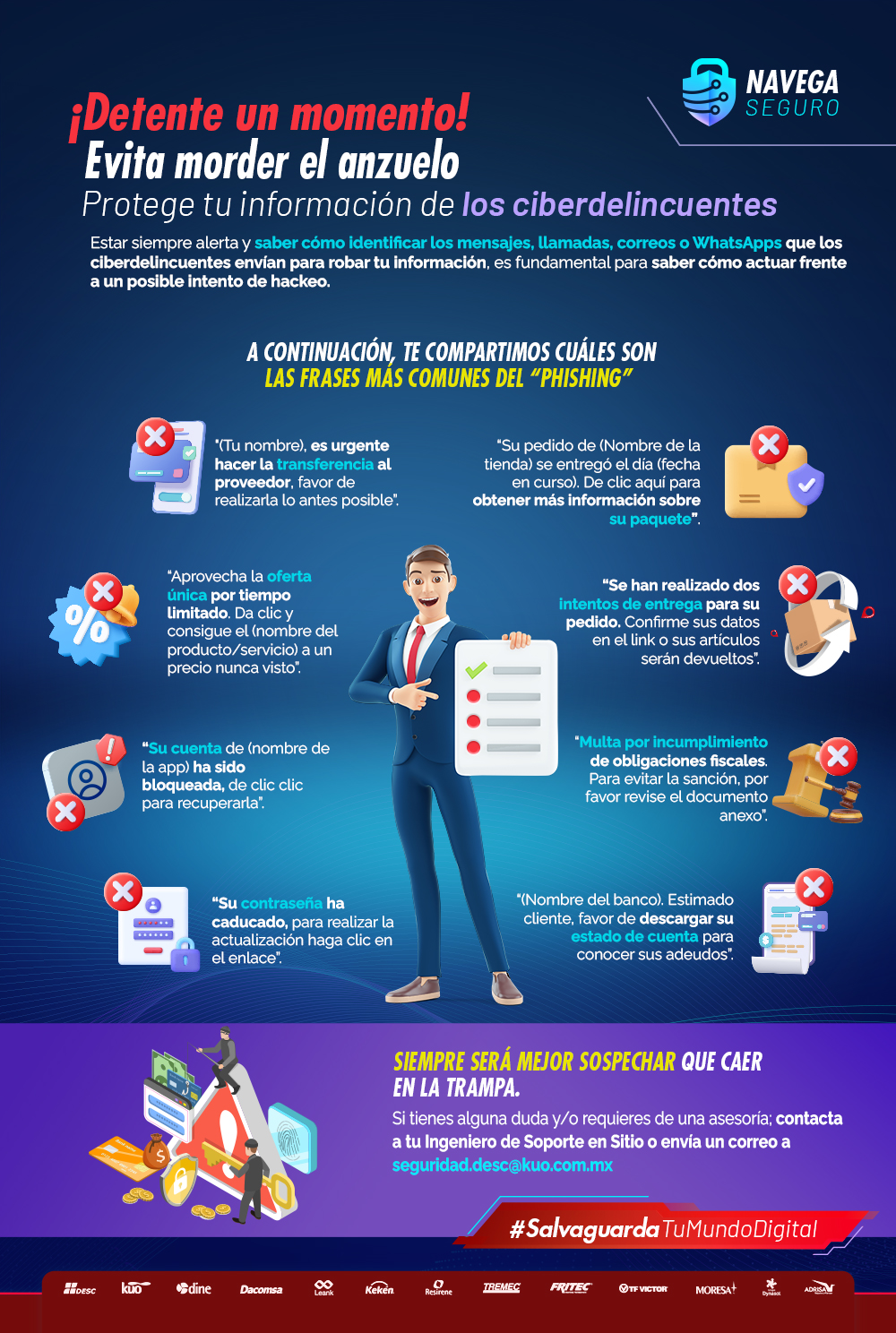 Siempre será mejor sospechar que caer en la trampa. Conoce las frases más comunes que usan los ciberdelincuentes para robar tu información.